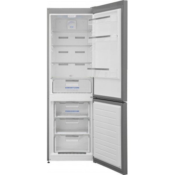 Frigorífico combi independiente High-Tech No Frost, capacidad total 295 L (frigorífico 207 L, congelador 88 L), control electrónico con display interior superior, ancho 60 cm, fondo 60 cm, alto 186 cm, clase energética E, nivel sonoro 39 dB, sistema Odor Free, Convert Zone (zona de conversión), Fresh Air Flow, bandeja para hielo, puerta reversible con apertura sin restricción (Zero Clearance), compresor de velocidad única.