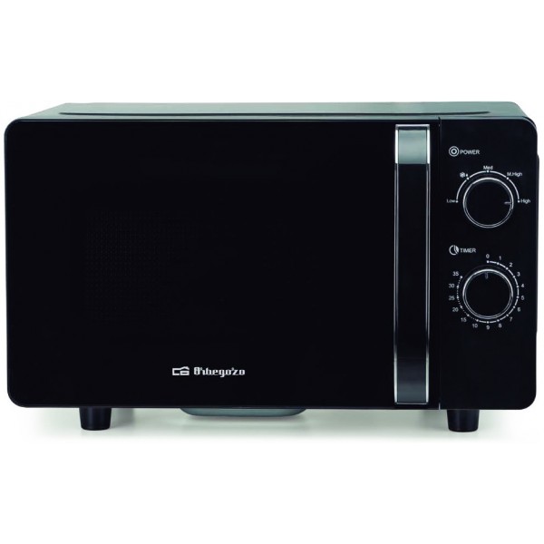 Microondas Orbegozo MI 2061 CE, capacidad de 20 litros, tecnología Flatbed de base lisa fácil de limpiar, interior cerámico, sin plato giratorio (apto para platos cuadrados), potencia microondas 700W, temporizador 35 minutos, 5 niveles de potencia, luz interior LED, función de descongelado, señal de fin de cocción, dimensiones externas 440x280x365 mm, internas 305x200x320 mm, peso neto 10,6 kg, uso versátil y compacto para cocina moderna.