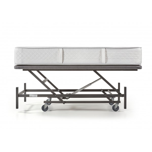 Cama eléctrica Di-Komfort Tower Electric, sistema de elevación por motor eléctrico que permite aumentar la base hasta 75 cm adicionales, facilitando el acceso y la realización de tareas sin agacharse. Estructura metálica reforzada en tubo de acero resistente (40x30 y 30x30 mm), base tapizada con tablero de partículas y tejido 3D transpirable para mayor confort. Incluye 4 ruedas giratorias oscilantes que permiten un desplazamiento suave y sin esfuerzo. Cumple la normativa CE, ofreciendo seguridad y fiabilidad. Disponible en medidas de ancho 90, 100, 135 y 150 cm, con largos de 190 o 200 cm. Mando inalámbrico opcional.