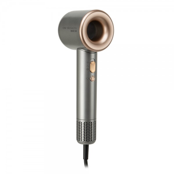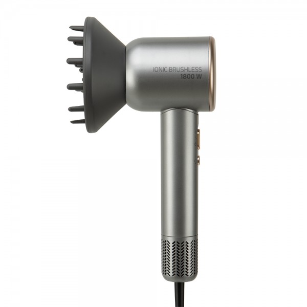 Secador de pelo profesional brushless Orbegozo SE1880, potencia 1800W, motor profesional brushless 110.000 RPM, tecnología iónica para evitar el encrespamiento, 2 niveles de velocidad, 3 niveles de temperatura más modo inteligente de temperatura, modo autolimpieza, protección contra sobrecalentamiento, accesorios magnéticos, incluye difusor para dar volumen y dos concentradores de distinto tamaño, longitud 25 cm.