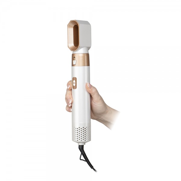 Cepillo de aire, secador y moldeador Orbegozo SET 8000 AirFlow Stylish, potencia 1000 W con motor DC, 3 niveles de calor ajustable, gran flujo de aire, válido para todo tipo de cabello, cable giratorio 360°, sistema contra sobrecalentamiento, accesorios incluidos (boquilla de secado, cepillo de peinado, rizador giro izquierda, rizador giro derecha, cepillo alisador), estuche de transporte y almacenaje con anilla para colgar, cable de 175 cm.