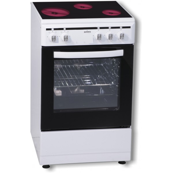 Cocina Rommer CVH-53 de libre instalación en color blanco, 3 placas eléctricas (2 de 1,2 kW y 1 de 1,7 kW), horno eléctrico de 48 litros con doble cristal de aislamiento, grill eléctrico, luz interior, dispositivo de seguridad en el horno, bandeja de horno y bandeja de rejillas incluidas. Dimensiones: 835 mm (alto), 500 mm (ancho), 565 mm (fondo). Capacidad de horno: 48 L. Peso neto/bruto: 26,2 / 27,7 kg.