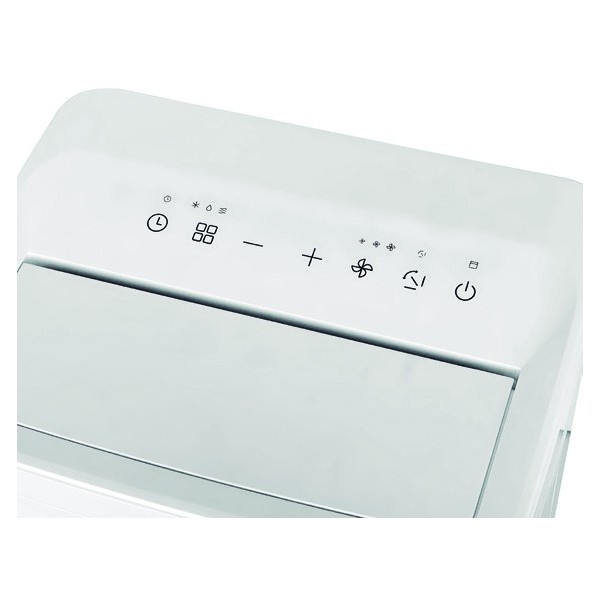 Aire acondicionado portátil Orbegozo ADR 12050, bomba de calor 4 en 1 con modos de frío, calor, ventilación y deshumidificación. Potencia de 3000 frigorías/h (2580 kcal), consumo en frío 1350 W, consumo en calefacción 1400 W y clase energética A. Utiliza gas R290, más respetuoso con el medio ambiente. Panel de control con iluminación LED, modo noche, 3 velocidades de ventilación, oscilación vertical y temporizador de encendido/apagado hasta 24h. Capacidad de deshumidificación 86 litros/día, caudal de aire máximo 425 m³/h y nivel sonoro máximo 65 dB. Incluye mando a distancia, ruedas pivotantes, filtros anti-polvo extraíbles, lamas direccionales con cierre completo, indicador de depósito lleno, conexión para desagüe y accesorios de instalación en ventanas. Dimensiones: 41,4 x 73,3 x 34,5 cm (ancho x alto x fondo).