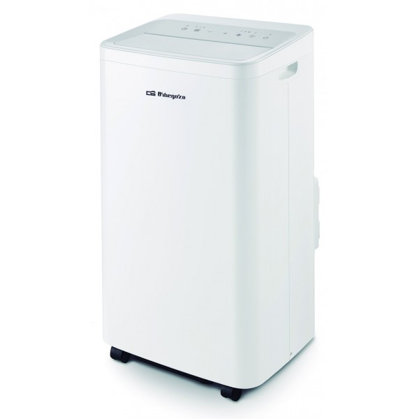 Aire acondicionado portátil Orbegozo ADRW 12050, bomba de calor 4 en 1 con modos de frío, calor, ventilación y deshumidificación. Potencia de 3000 frigorías/h (2580 kcal), consumo en frío 1350 W, consumo en calefacción 1400 W y clase energética A. Conexión WiFi mediante app Orbegozo, compatible con Amazon Alexa y Google Assistant. Utiliza gas R290, más respetuoso con el medio ambiente. Panel de control con iluminación LED, 3 velocidades de ventilación, oscilación vertical y temporizador de encendido/apagado hasta 24h. Capacidad de deshumidificación 86 litros/día, caudal de aire máximo 425 m³/h y nivel sonoro máximo 65 dB. Incluye mando a distancia, ruedas pivotantes, filtros anti-polvo extraíbles, lamas direccionales con cierre completo, indicador de depósito lleno, conexión para desagüe y accesorios de instalación en ventanas. Dimensiones: 41,4 x 73,3 x 34,5 cm (ancho x alto x fondo).