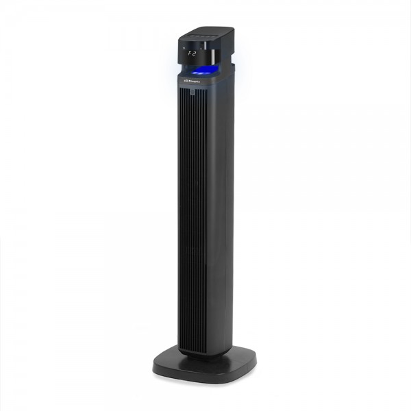 Ventilador de torre oscilante Orbegozo TWM3100, potencia de 45 W y altura de 113 cm. 3 modos de ventilación (normal, brisa y noche), display digital LED, indicador de temperatura ambiente, movimiento oscilante y funcionamiento silencioso. Bandeja para esencias aromáticas. Temporizador de 1 a 24 horas. Incluye mando a distancia y asa de transporte.