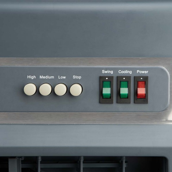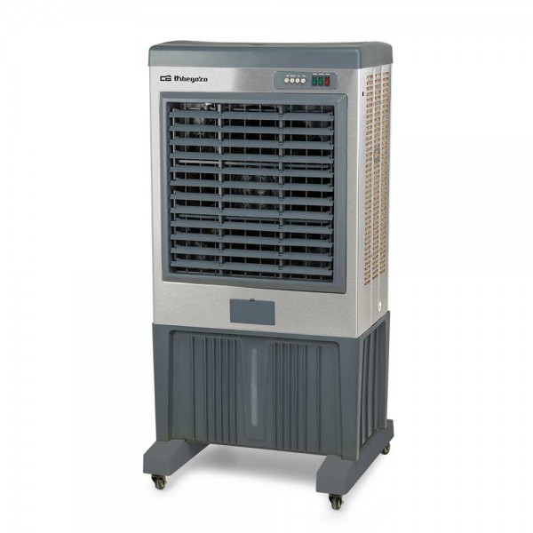 Climatizador evaporativo Orbegozo AIR 5120, sistema 3 en 1 con funciones de climatizador, humidificador y purificador. Potencia de 660 W, depósito de 120 litros y acabado en acero inoxidable. Triple cortina de frío, 3 velocidades de ventilación, panel de control mecánico, lamas horizontales direccionales manuales y lamas verticales oscilantes automáticas. Llenado continuo con boca de llenado y tapón de vaciado, recogecables, asas de transporte y ruedas pivotantes con bloqueo. Purifica el ambiente eliminando polvo y malos olores. Incluye manguito para llenado continuo y acumuladores de frío. Dimensiones: 72 x 145 x 47,5 cm (ancho x alto x fondo).