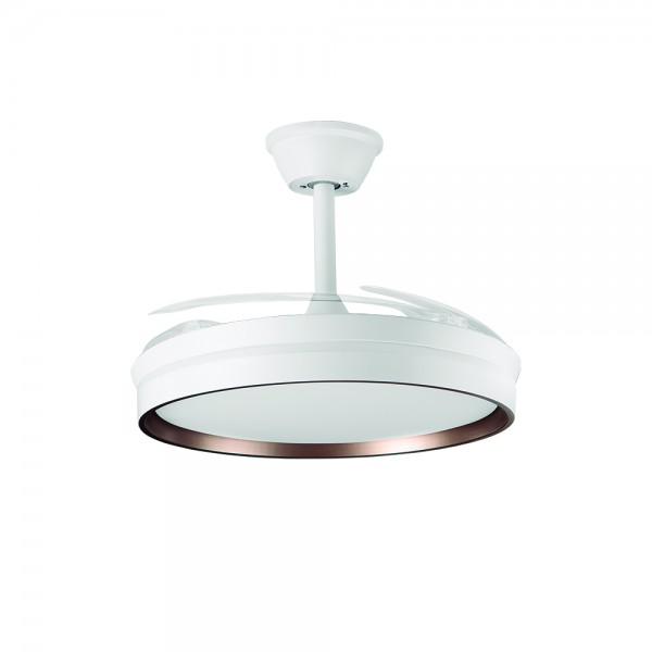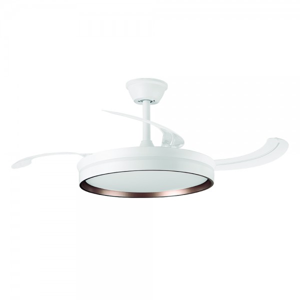 Ventilador de techo retráctil Orbegozo CP161105 con motor DC de bajo consumo y alta eficiencia, potencia de 30 W y diámetro de aspas de 105 cm. 4 aspas retráctiles, 6 velocidades de ventilación, modo brisa y funcionamiento silencioso. Sistema de ventilación reversible con modo invierno y verano y sistema de triple protección contra polvo, humedad e insectos. Luz LED de 3 tonos de 40 W, tipo SMD con 4000 lúmenes, temperatura de color regulable de 3000, 4000 y 6500 K, brillo variable y modo luz nocturna. Incluye mando a distancia, temporizador programable de 2 y 4 horas y dos prolongadores. Altura regulable: 30-40 cm.