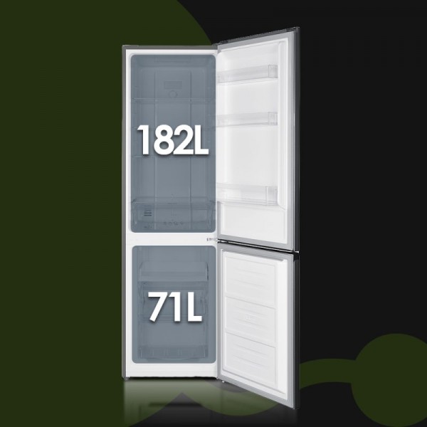 Frigorífico combi Aspes AC185502ENFX, libre instalación, color Inox con marco de puerta en aluminio, tecnología No Frost con sistema de ventilación Multi Air Flow y descongelación automática. Capacidad neta total de 253 L, con 182 L en refrigerador y 71 L en congelador de 4 estrellas, temperatura de refrigeración entre 2 y 8 ºC y congelación entre -14 y -22 ºC, capacidad de congelación de 3,2 kg/24h y autonomía de 9,5 h. Dimensiones de 1800 x 540 x 600 mm, soporte sobre patas y ruedas, eficiencia energética E, nivel sonoro de 40 dB, clase climática N/ST, potencia de 110 W y consumo anual de 220 kWh. Gas refrigerante R600a, luz interior LED reemplazable, puertas abatibles reversibles con uñero, 3 baldas de cristal, 1 cajón de control de temperatura, 3 balcones en puerta y 2 cajones en congelador.