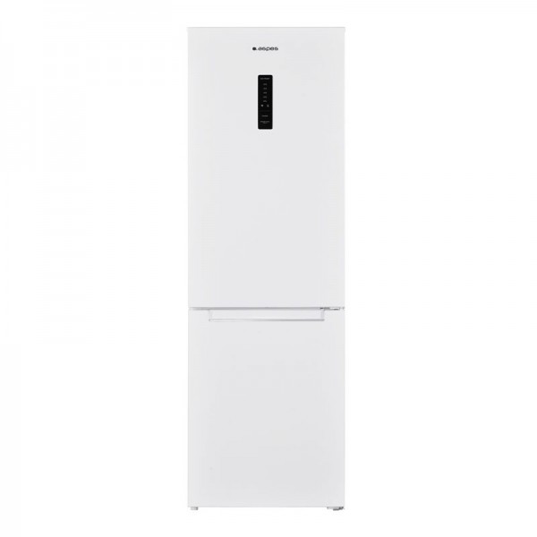 Frigorífico combi Aspes AC185603ENF, libre instalación, color blanco, tecnología No Frost con sistema de ventilación Multi Air Flow y descongelación automática. Capacidad neta total de 293 L, con 210 L en refrigerador y 83 L en congelador de 4 estrellas, temperatura de refrigeración entre 2 y 8 ºC y congelación entre -14 y -22 ºC, capacidad de congelación de 3,8 kg/24h y autonomía de 8,5 h. Dimensiones de 1860 x 600 x 600 mm, soporte sobre patas y ruedas, eficiencia energética E, nivel sonoro de 40 dB, clase climática N/ST, potencia de 110 W y consumo anual de 233 kWh. Gas refrigerante R600a, luz interior LED reemplazable, puertas abatibles reversibles con uñero, 4 baldas de cristal, 1 cajón verdulero, 3 balcones en puerta y 3 cajones en congelador.
