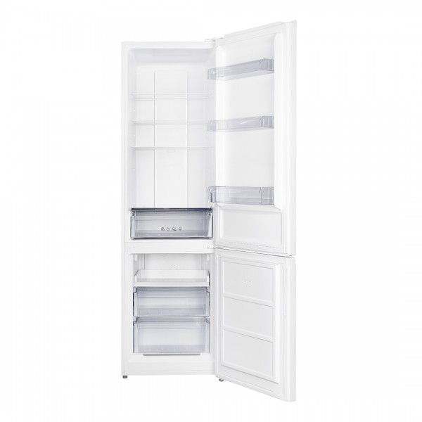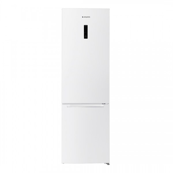 Frigorífico combi Aspes AC2602ENF, libre instalación, color blanco, tecnología No Frost con sistema de ventilación Multi Air Flow, control electrónico y descongelación automática. Capacidad neta total de 326 L, con 243 L en refrigerador y 83 L en congelador de 4 estrellas, temperatura de refrigeración entre 2 y 8 ºC y congelación entre -14 y -28 ºC, capacidad de congelación de 3,8 kg/24h y autonomía de 9,5 h. Dimensiones de 2010 x 600 x 605 mm, soporte sobre patas normales y niveladoras, eficiencia energética E, nivel sonoro de 40 dB, clase climática N/ST, potencia de 110 W y consumo anual de 231 kWh. Incluye alarma de puerta abierta, memoria tras apagón y modo Super congelación; gas refrigerante R600a, luz interior LED reemplazable, puertas abatibles reversibles con uñero, 4 baldas de cristal, 1 cajón verdulero, 1 huevera, 1 bandeja extraíble en congelador, 2 cajones en congelador y bandeja de hielo.